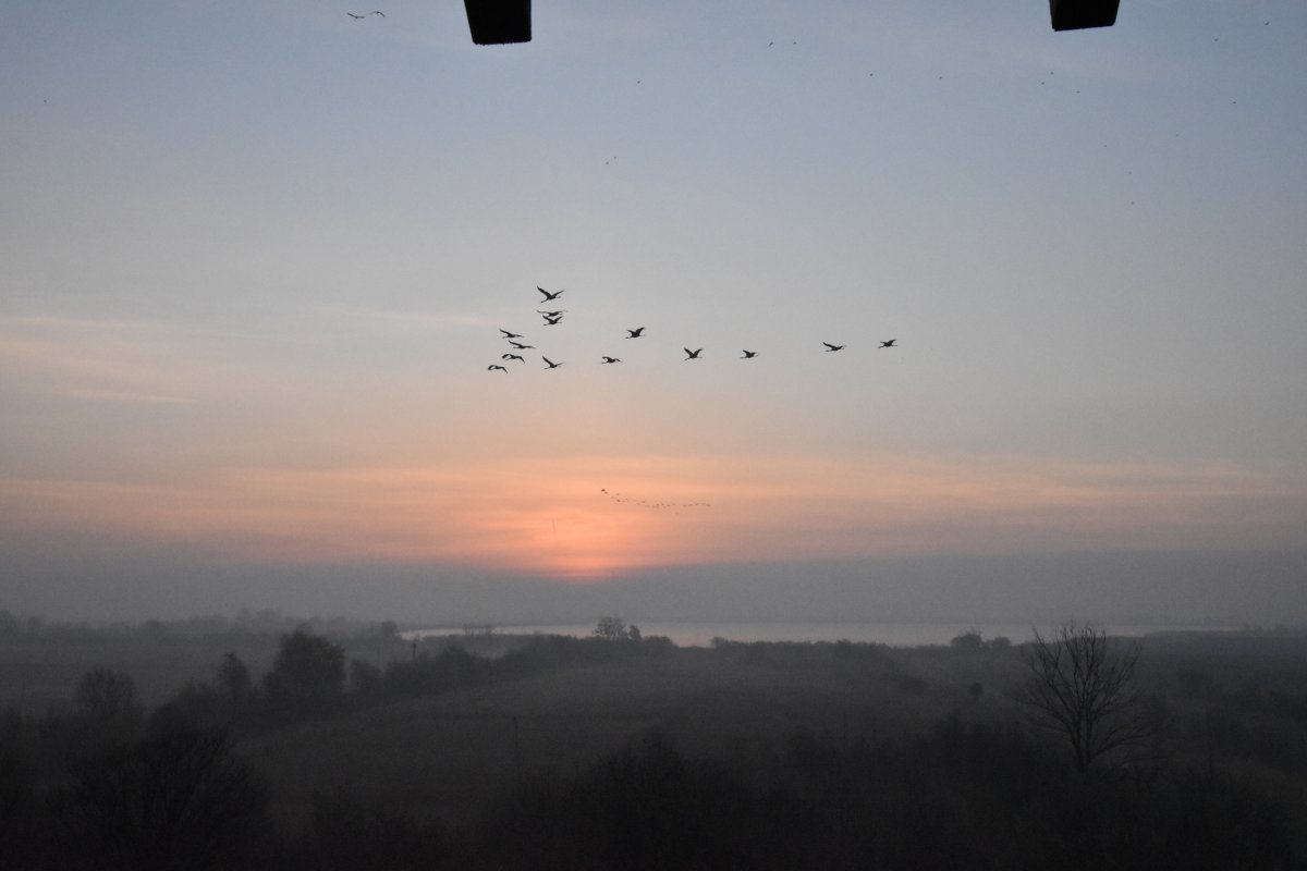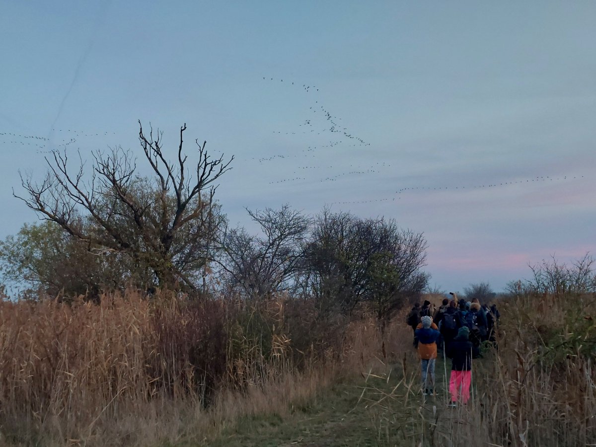 A nap végén pedig érkeztek a főszereplők, a darvak esti behúzásának lehettünk szem- és fültanúi.