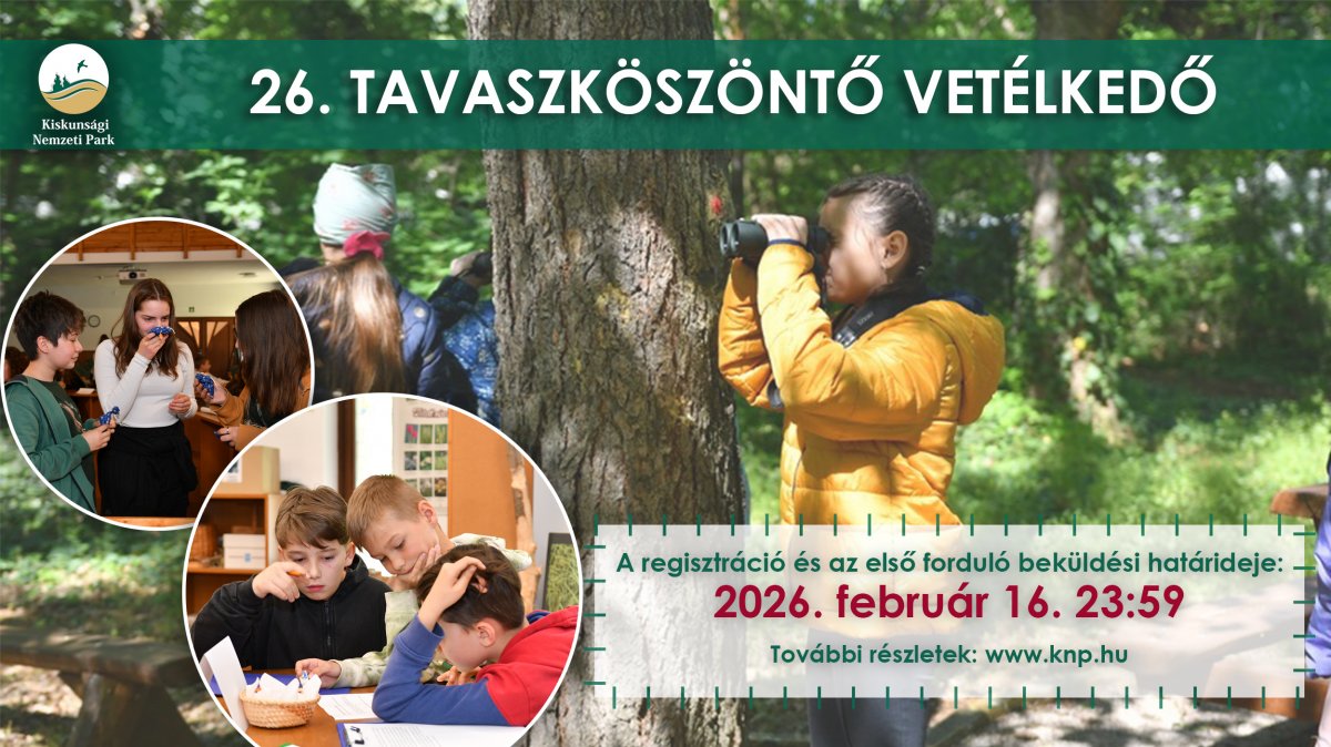 Immáron 26. alkalommal indítjuk útjára a Kiskunsági Nemzeti Park Igazgatóság játékos Tavaszköszöntő természetismereti vetélkedőjét, amely az elmúlt évek tapasztalatai alapján nagy sikernek örvend az általános iskolások körében. A versenyre elsősorban a Kiskunsági Nemzeti Park működési területén található települések iskoláinak tanulóit várjuk, de lehet jelentkezni az ország bármely más területén található iskolából is.