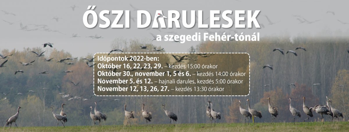 A hazai daruvonulási útvonal egyik legfontosabb állomása a szegedi Fehér-tó környéke. A Kiskunsági Nemzeti Park Igazgatóság túravezetője segítségével felejthetetlen élményben lehet részünk, miközben darvak százai szállnak el a fejünk felett.