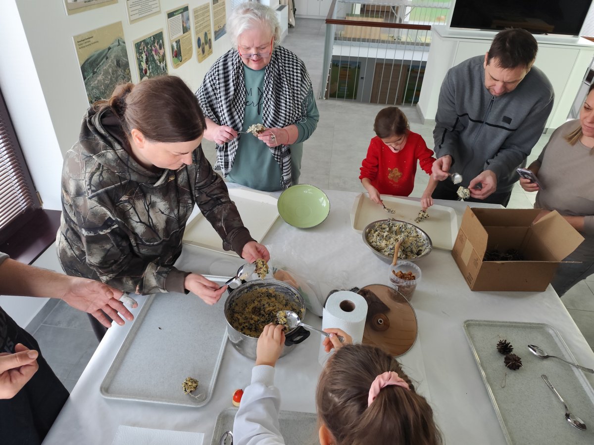 Akik a délutáni, A téli madáretetés fortélyai című rendezvényre jöttek, azok kora délután kezdtek gyülekezni a Puszta Kapuja Információs Központban. Egy forró tea mellett beszélgetve vártuk össze egymást, s közben volt lehetőség megismerni a látogatóközpont kiállítását. A programra érkező, zömmel kisgyermekes családok érdeklődve hallgatták a madáretetés műhelytitkait bemutató előadást, ami több ponton is beszélgetéssé alakult, s ebben a legkisebbek is részt vettek.